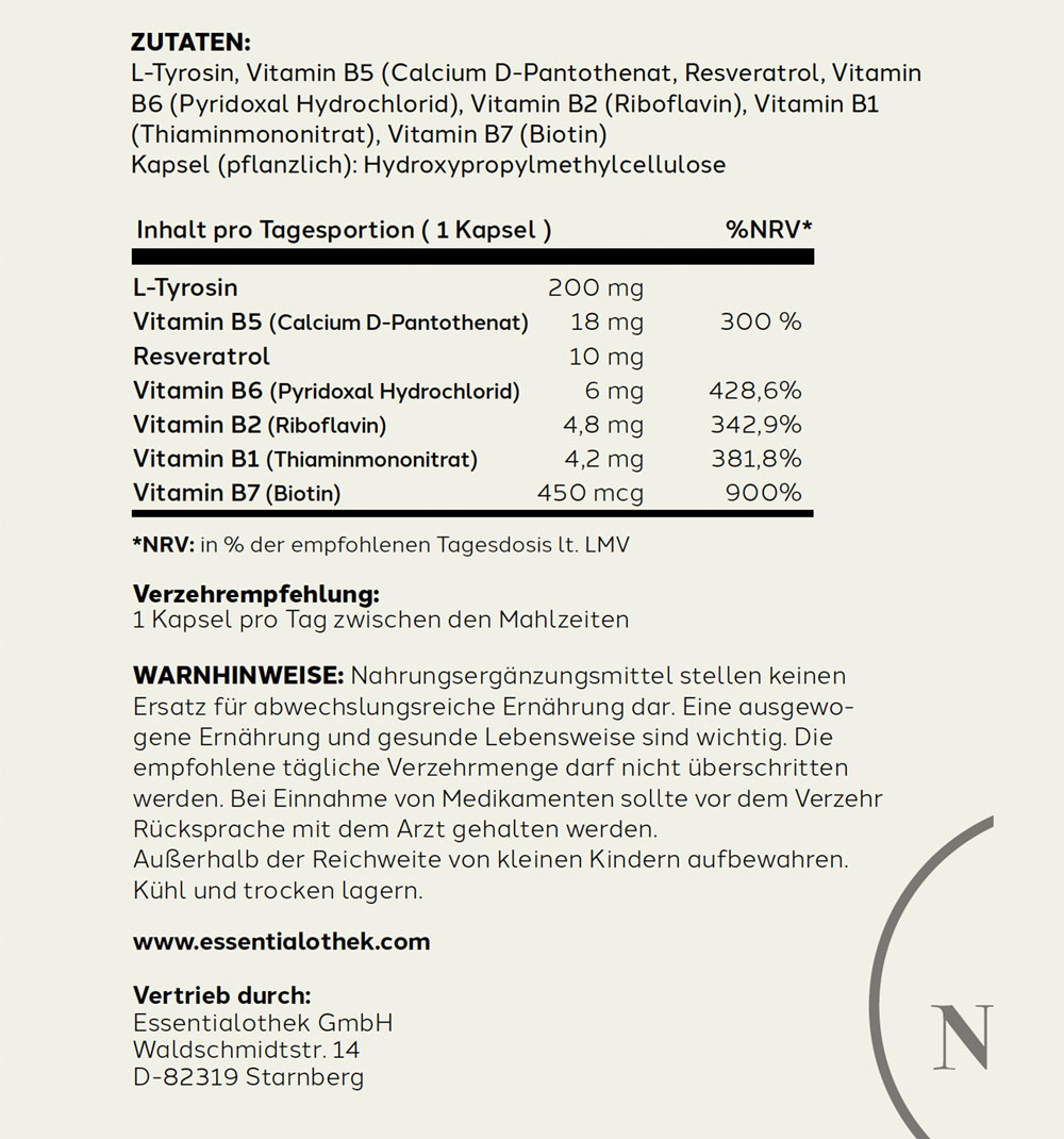 1 Kapsel pro Tag und zwischen den Mahlzeiten einnehmen. Nahrungsmittel stellen keinen Ersatz für abwechslungsreiche Ernährung dar. Eine ausgewogene Ernährung und gesunde Lebensweise sind wichtig. Die empfohlene tägliche Verzehrmenge darf nicht überschritten werden. Bei Einnahme von Medikamenten sollte vor dem Verzehr Rücksprache mit dem Arzt gehalten werden. Außerhalb der Reichweite von Kindern aufbewahren. Kühl und trocken lagern.